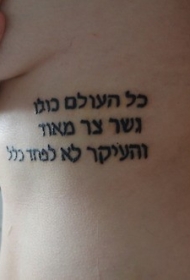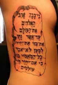 男士侧肋希伯来字符纹身图案