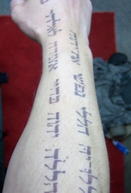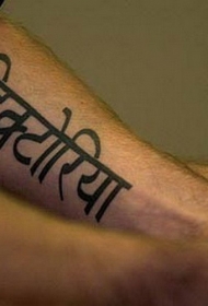 手臂上的黑色宗教字符纹身图案