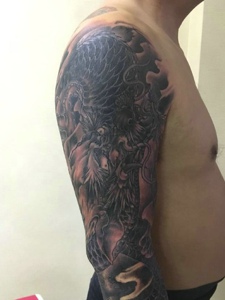 红凤凰与邪龙结合的彩色半甲纹身图片