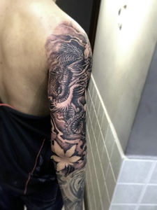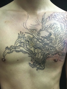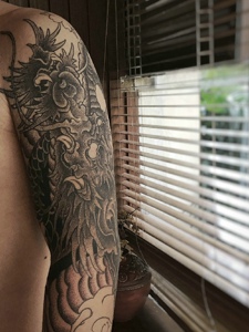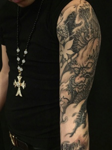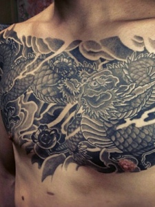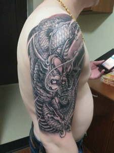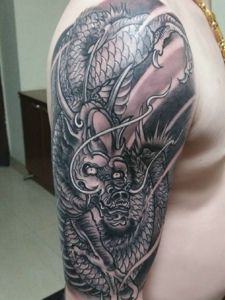 吊炸天的帅气黑白邪龙半甲纹身图片
