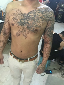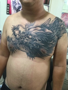 正在进行中的过肩邪龙纹身刺青