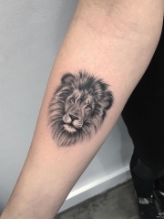 小臂狮子头像写实纹身图案