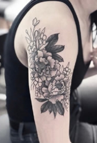 新传统花朵纹身:黑灰新传统风格的素花花卉纹身图案