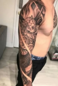 新传统风格的大花臂纹身作品图片
