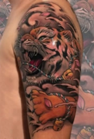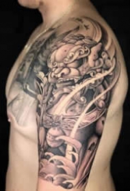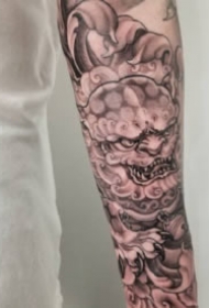 纹身新传统图片 新传统风格的一组包臂唐狮等纹身图片