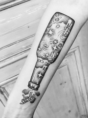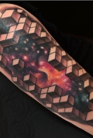 男生手臂上彩绘水彩素描创意星空元素立体纹身图片