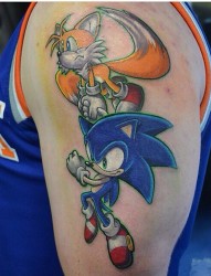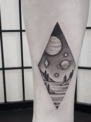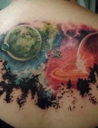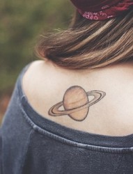 手臂浅黑白色高速旋转的星球和卫星纹身图片