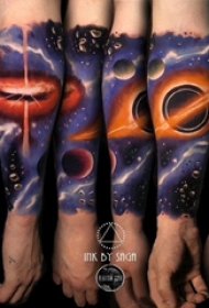 小宇宙纹身 男生手臂上彩色的星球纹身图片