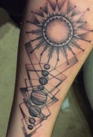 手臂纹身素材 男生手臂上几何和星球纹身图片