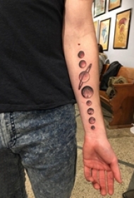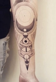 几何元素纹身 男生手臂上黑色的星球纹身图片