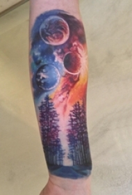 手臂纹身图片 男生手臂上彩色的星球纹身图片