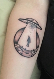 男生手臂上黑灰素描点刺技巧神秘外星星球纹身图片