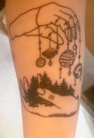 女生手臂上黑灰素描点刺技巧创意文艺星球纹身图片