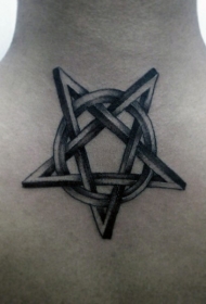 背部黑色的凯尔特结五角星纹身图案