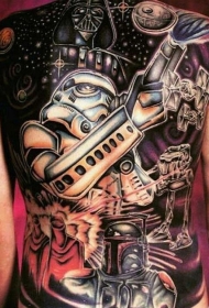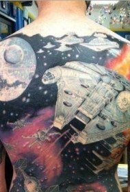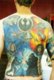 背部大规模的星球大战主题丰富多彩纹身图案