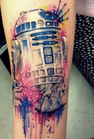 手臂令人印象深刻的水彩机器人纹身图案