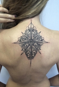 背部点刺风格黑色的图腾星星纹身图案