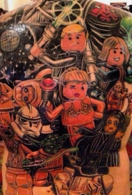 背部五彩的星球大战主题与乐高卡通纹身图案