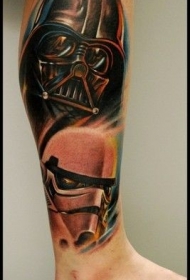 小腿星球大战主题达斯维德和冲锋队纹身图案