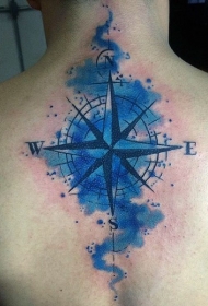 背部蓝色的航海指南针纹身图案
