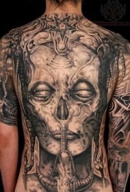 背部灰色的恶魔骷髅与星星纹身图案