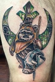 大腿彩色的星球大战主题伊渥克纹身图案