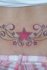 腰部大红色的小星星藤蔓纹身图案