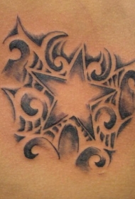 男生胸上黑灰色个性星星轮廓与英文句子纹身图片