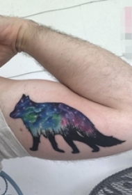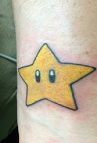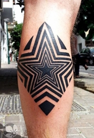 男生小腿上彩绘几何线条玛丽奥蘑菇和星星纹身图片