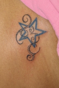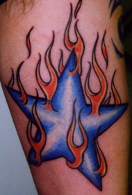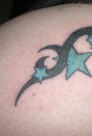 手臂点刺彩色航海星和蝴蝶纹身图案