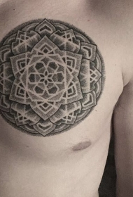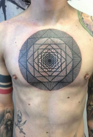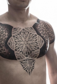 胸部点刺风格黑色蝴蝶几何纹身图案