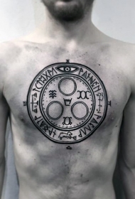 胸部古代风格黑色部落字体和符号纹身图案