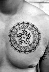 胸部圆形的印度字符黑色纹身图案