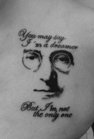 黑色胸部列侬肖像字母纹身图案