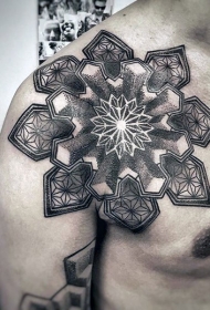 肩部雕刻风格黑色点刺几何梵花纹身图案