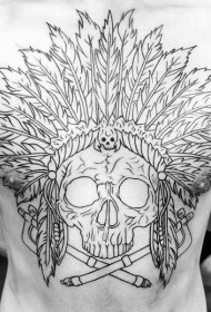 胸部黑色线条印度骷髅羽毛纹身图案