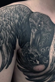 胸部和肩膀黑色大乌鸦纹身图案