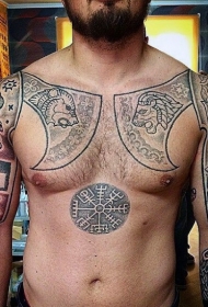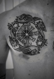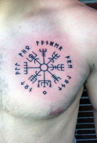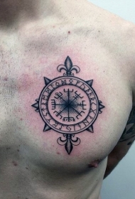 胸部黑色古罗盘字符纹身图案