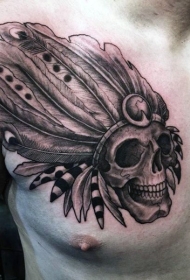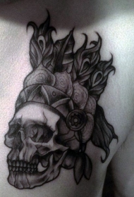 胸部雕刻风格黑色印度骷髅与头盔纹身图案