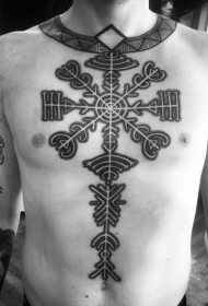 胸部和腹部黑色神秘的装饰纹身图案