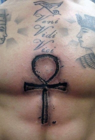 胸部古代黑色埃及符号十字架纹身图案