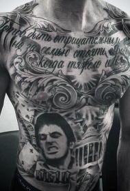 胸部凯尔特风格黑色五角星和圆圈纹身图案