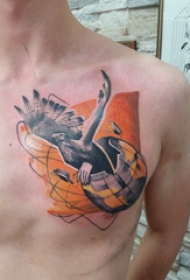纹身胸部男 男生胸部音符和小鸟纹身图片