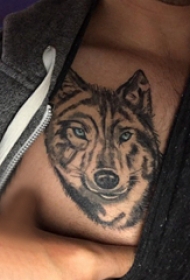 纹身胸部男 男生胸部黑色的狼头纹身图片
