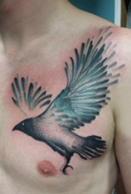 纹身胸部男 男生胸部黑色的鹦鹉纹身图片
