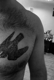 奇妙的写实黑白飞行鹰胸部纹身图案