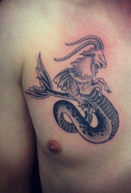 胸部神秘的黑白恶魔肖像与骷髅和心脏纹身图案
