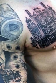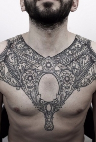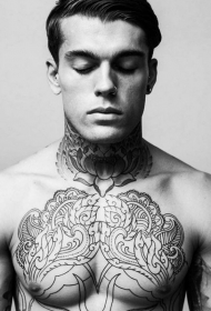 巴洛克风格黑色黑灰胸部和肩膀纹身图案