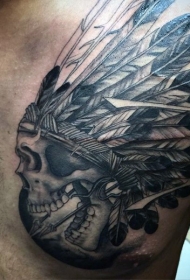 胸部精致的黑色印度骷髅与箭纹身图案