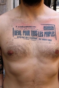 男子胸部黑色打印字母纹身图案